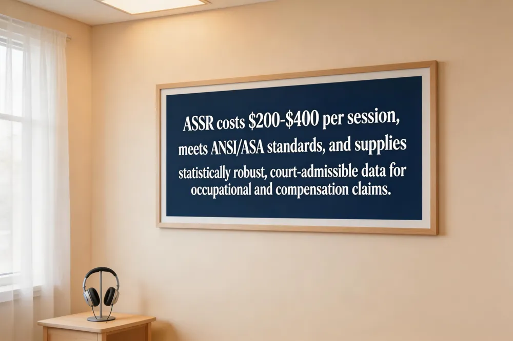 ASSR test price – in the U.S., a full ASSR evaluation typically costs $200–$400, up to $500 for extensive diagnostic packages; insurance may cover part of the expense.