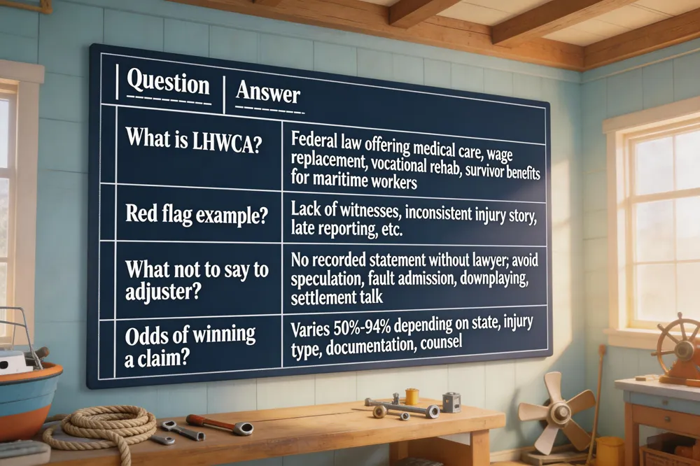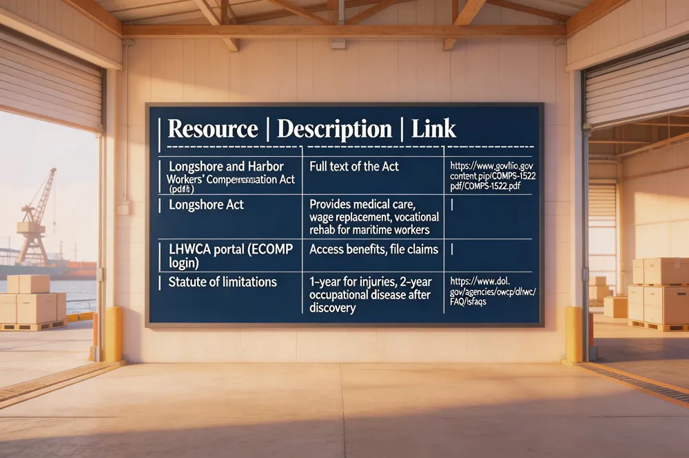 The Longshore and Harbor Workers’ Compensation Act (LHWCA) gives maritime employees federal coverage for injuries on navigable waters or adjacent sites. Workers must give written notice of an injury within 30 days (Form LS‑201) and file a formal claim within one year (Form LS‑203). Harbor authorities—port commissions, district offices, and safety officers—serve as the first point of contact, providing claim forms, authorizing medical treatment, and guiding claimants through the Secure Electronic Access Portal. Prompt, documented communication with these authorities ensures that deadlines are met, earnings and medical records are accurately reported, and disputes are resolved quickly. Clear, factual exchanges dramatically improve the likelihood of timely benefit approval and reduce the risk of claim denial.