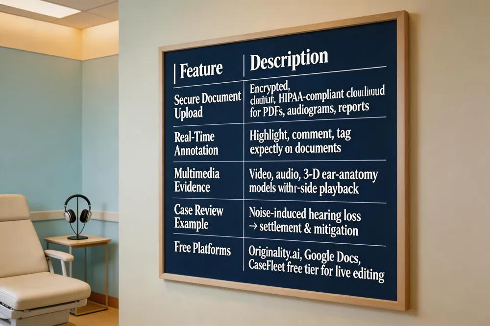 Free Interactive Case Review Platforms – Tools such as Originality.ai’s Case Study Analysis Maker, Google Docs, and CaseFleet’s free tier offer live‑editing, commenting, and document attachment at no cost, enabling collaborative review of auditory‑loss claims without premium software.