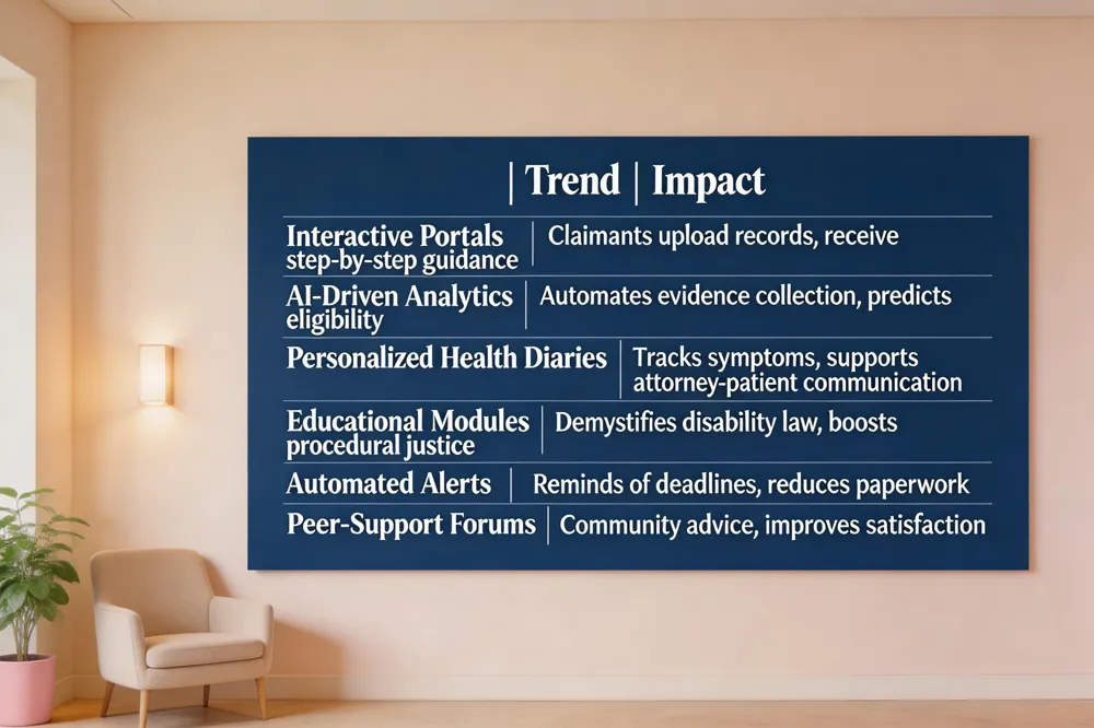 Empowerment for disability means giving claimants the tools, information, and support to take an active role in their assessment and claim process. Interactive case‑review platforms enable this shift by allowing claimants to upload medical records, audiograms, and incident reports into a secure portal, receive step‑by‑step guidance on disability law, and engage in real‑time collaboration with attorneys, medical experts, and peer‑support forums. These platforms provide personalized health‑record diaries, educational modules, and calculators that demystify eligibility criteria and potential compensation. Research shows that such digital tools boost satisfaction, perceived procedural justice, and accurate understanding, leading to faster claim resolution and stronger physician‑patient relationships. By integrating AI‑driven analytics, secure cloud storage and automated alerts, the next generation of disability‑empowerment platforms will further streamline evidence collection, reduce paperwork, and empower claimants to advocate for themselves throughout the workers’ compensation and third‑party claim journey.