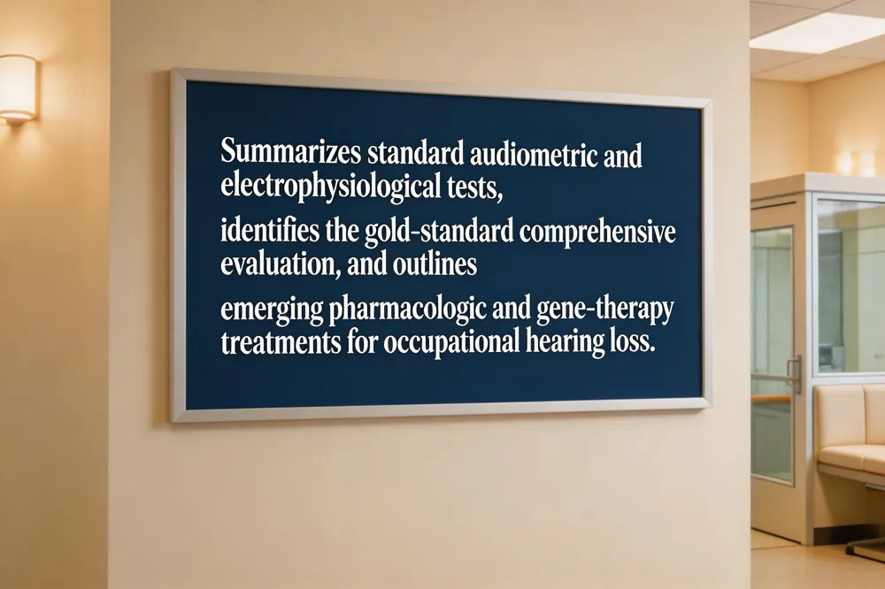 Current options remain advanced digital hearing aids, cochlear implants, and bone‑anchored devices. Emerging therapies include pharmacologic delivery of growth‑factor‑laden nanoparticles to protect inner‑ear cells, Notch‑inhibitor‑driven hair‑cell regeneration, and gene‑therapy approaches such as CRISPR‑based editing. While still investigational, these innovations promise future alternatives to devices, especially for sensorineural loss caused by occupational noise exposure.