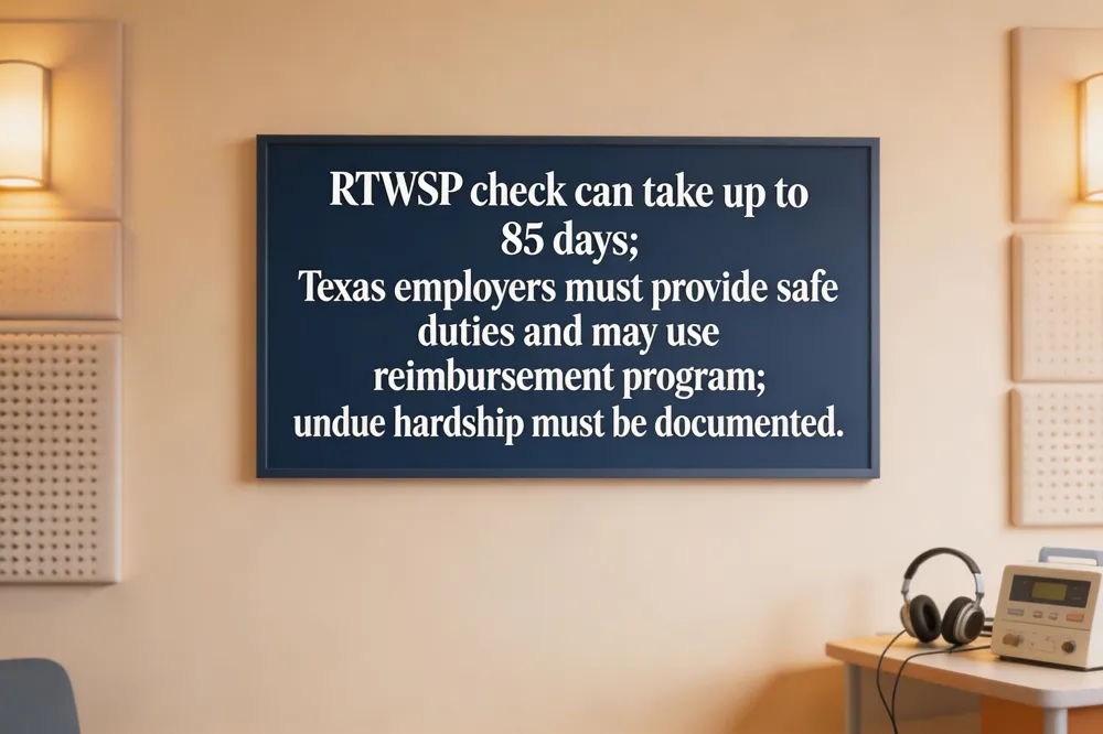 What if an employer cannot accommodate work restrictions Texas? If a reasonable accommodation would cause undue hardship under Labor Code §21.128, the employer may decline modified duty, but must document the effort and why it is infeasible. The employee then remains eligible for workers’ compensation benefits without a RTW requirement and may pursue ADA accommodations or consult a workers’‑comp attorney to protect rights and explore disability benefits.