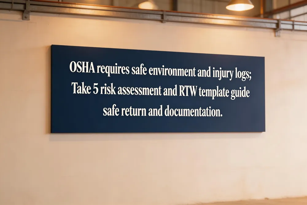 OSHA Record‑Keeping and Safety Requirements OSHA does not set a fixed return‑to‑work timeline; it mandates a safe work environment and accurate injury logs (29 CFR 1904.7). Before regular duties resume, a qualified health professional must clear the employee, and any restrictions must be recorded on the OSHA 300 Log. State workers’ compensation statutes add specific medical‑clearance and accommodation rules. Failure to document or provide safe modified duties can trigger citations.