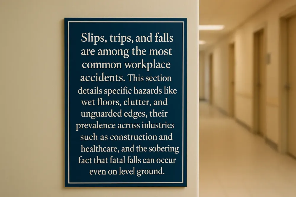 Slips, trips, and falls are among the most common workplace accidents. Statistics underscore their severity: