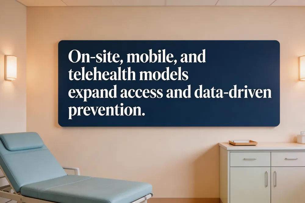 On‑site, near‑site, mobile and telemedicine delivery options are reshaping occupational injury care clinics. On‑site clinics bring board‑certified occupational‑medicine physicians directly to the work floor, while near‑site facilities reduce travel time for workers in clustered sites. Mobile units travel to remote or high‑risk locations, and telehealth platforms provide 24/7 triage and follow‑up, extending care beyond traditional hours. Technology integration—electronic health records (EHR), secure telemedicine portals, and real‑time data analytics—enables seamless claim documentation, OSHA‑compliant reporting, and rapid identification of injury patterns for preventive interventions. When selecting a clinic provider, employers should assess clinical expertise (board‑certified specialists), service hours, geographic coverage, EHR and telemedicine compatibility, regulatory compliance, and privacy safeguards.
