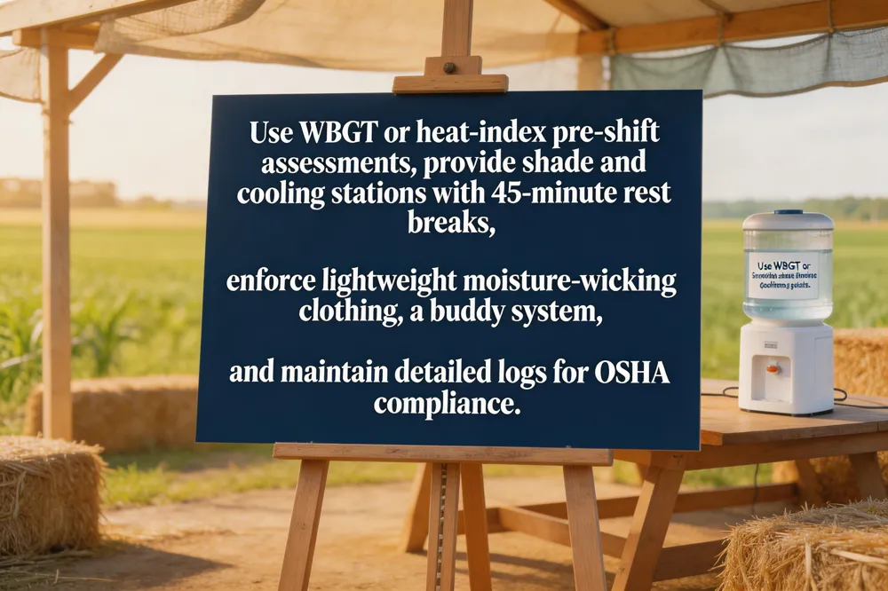 Documentation and compliance – Maintain a written heat‑illness prevention plan, daily inspection logs, hydration and break records, and incident reports to satisfy OSHA’s General Duty Clause and support any legal or insurance claims.