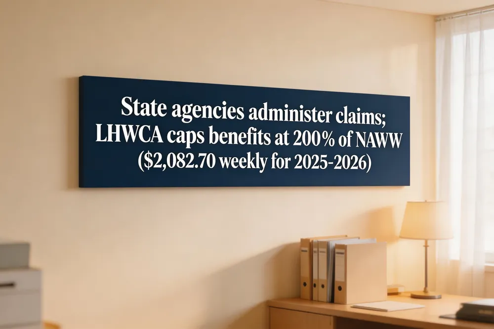 When a claim involves occupational hearing loss, a qualified audiologist must perform baseline and follow‑up audiograms; the LHWCA schedule assigns weeks of compensation (e.g., 52 weeks for loss of one ear) based on the measured loss. Subrogation rights arise once the employer or its insurer receives LHWCA benefits; they may pursue third‑party recoveries within six months, and any recovery is first applied to the employee’s attorney fees, then to reimburse the Special Fund, which pays benefits when the employer is insolvent. Retaliation is prohibited by Section 49 of the LHWCA—an employer may not fire, demote, or otherwise punish a worker for filing a claim, and any such conduct can be the. seek administrative relief. Coordination with vocational rehabilitation is essential when the worker cannot return to the pre‑injury job; the OWCP can fund training, job‑placement services, and adaptive equipment. Maximum compensation rate: The Act caps weekly benefits at 200 percent of the National Average Weekly Wage (NAWW); for the 2025‑2026 adjustment period the NAWW is $1,041.35, yielding a maximum of $2,082.70 per week. Death benefits: Survivors receive up to $3,000 for funeral expenses; a widow/widower without children gets 50 % of the deceased’s average weekly wage (AWW), while a widow/widower with children or a single child receives 66 ⅔ % of the AWW, never exceeding that percentage.