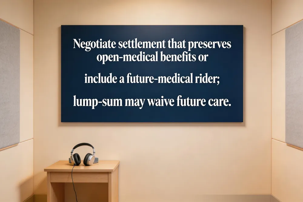 After a claim reaches Maximum Medical Improvement (MMI), the parties negotiate a settlement. An open‑medical‑benefits arrangement preserves the claimant’s right to future treatment—any additional surgeries or therapies linked to the original injury remain payable under the LHWCA medical fund. In contrast, a lump‑sum settlement typically waives all future medical claims unless the agreement expressly reserves those benefits. To protect the right to future surgeries, a claimant should request a stipulation that keeps the medical benefit fund active or negotiate a structured settlement that includes a “future medical expenses” rider.