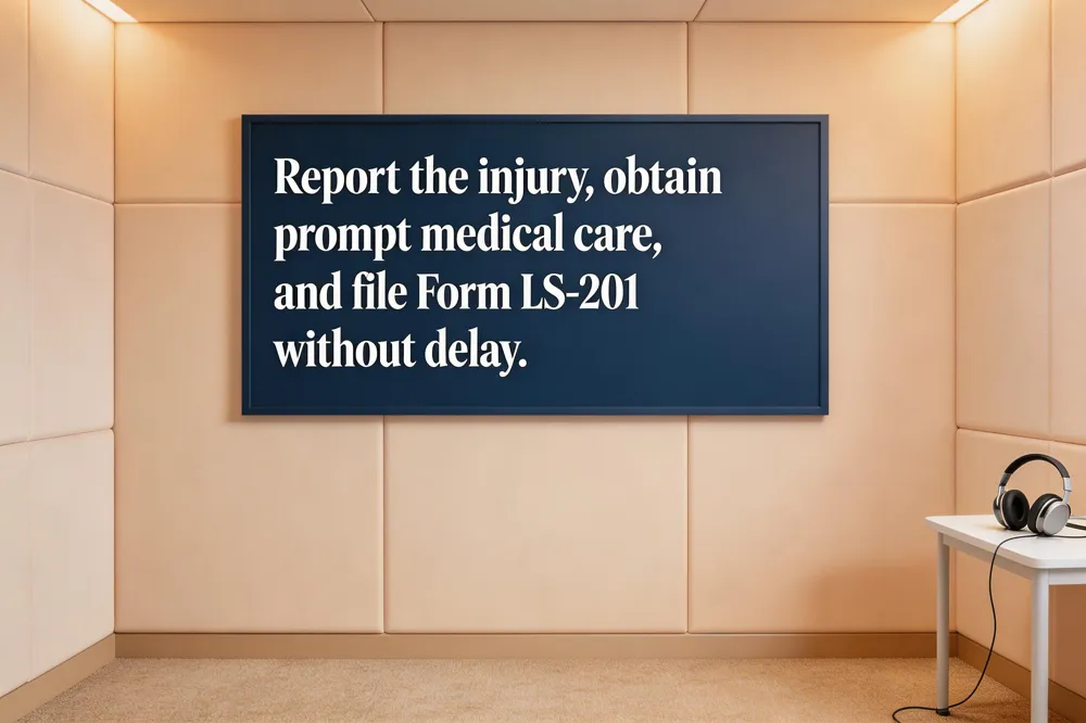 A: Begin by reporting the injury to the employer and completing Form LS‑201. Seek immediate medical care and keep all records. The employer files the required injury report, and the claim is entered with the OWCP. An investigation follows; the insurer may order additional exams and then decides on benefit approval. If denied, you may request an informal conference, then a formal hearing before an Administrative Law Judge.