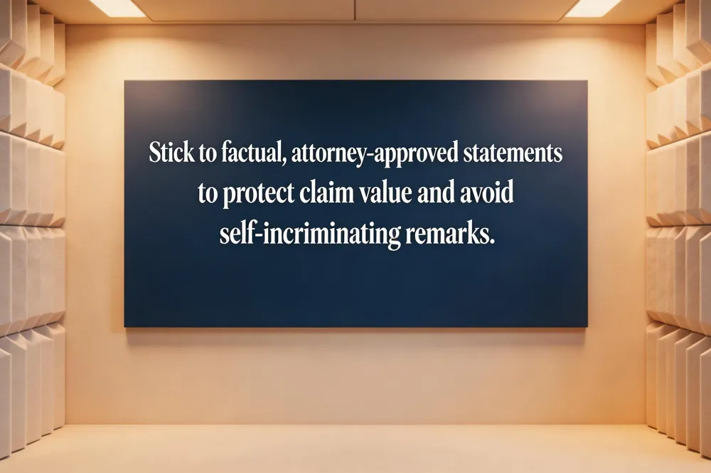 Answer to “What should I avoid saying in an injury claim?” Avoid any statement that could diminish your claim—expressions of being “fine,” apologies, admissions of fault, speculation about causes, down‑playing injury severity, or unsolicited medical history. Only provide objective facts (time, location, what you observed) and let your counsel handle all further communication.
